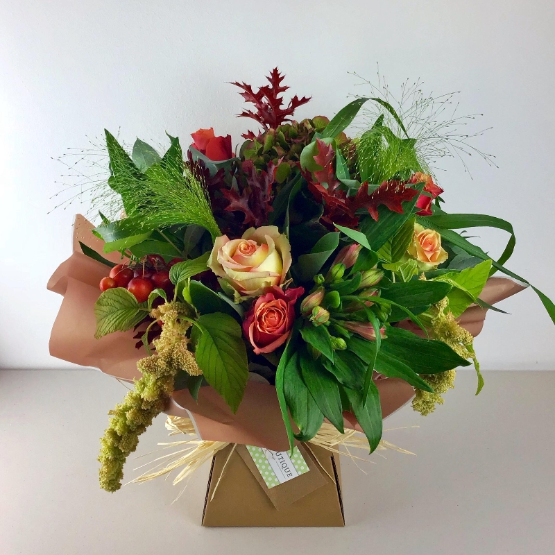 The flowers included in this bouquet will vary from those shown. Our seasonal stock is constantly changing, so that each and every design we make will be interesting and unique. It will however, always match your chosen colour scheme. Requires ordering.