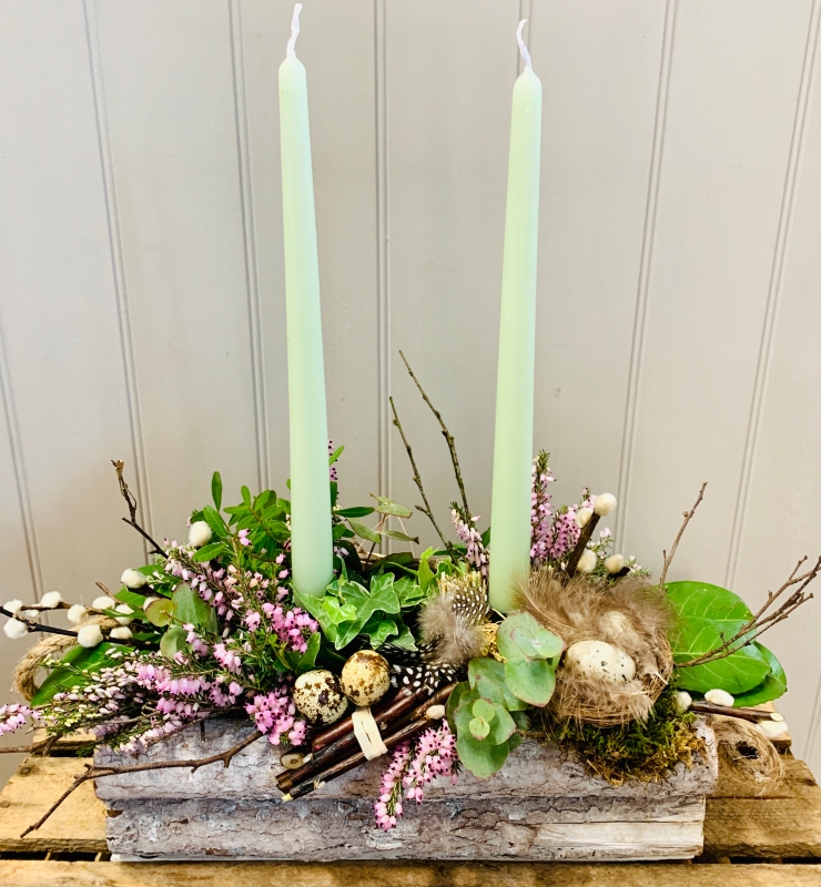 This charming candle arrangement would make a perfect centrepiece at Easter gatherings.